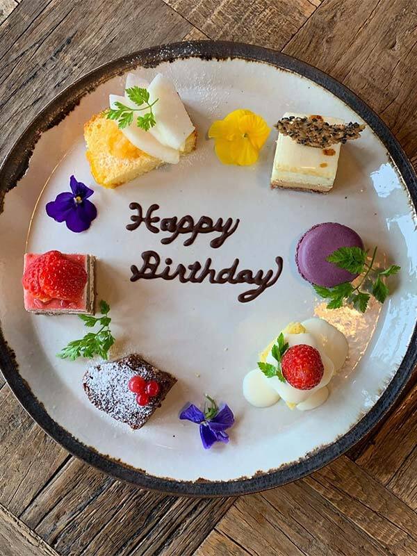 当店では、お誕生日や記念日などの特別な日に、大切な方へのサプライズとしてアニバーサリープレートをご用意しております。(2日前までのご予約で承っております)